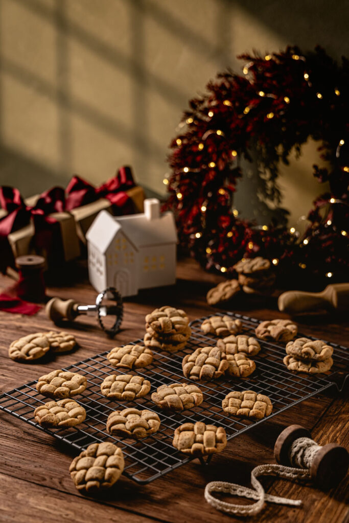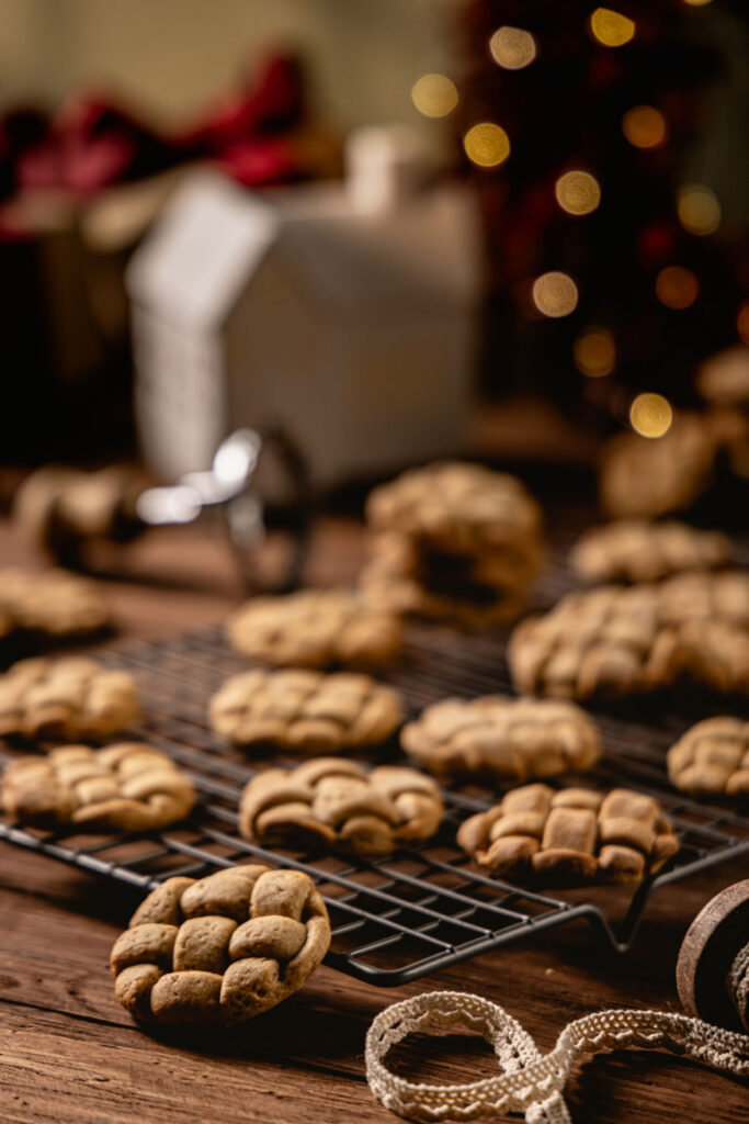 O resultado é uma bolacha crocante nas bordas, ligeiramente macia no centro e repleta de sabor natalício.