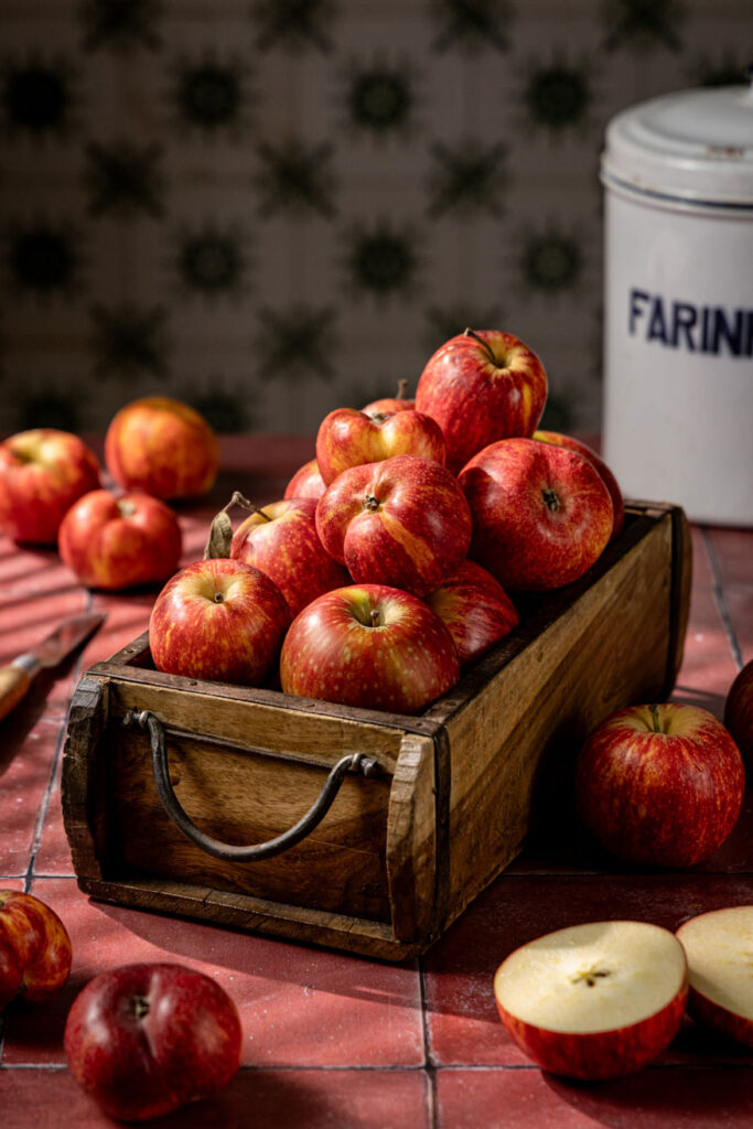 - Descasque as maçãs: A casca pode ser cerosa e amarga e, muitas vezes, fica enrugada e dura quando assada, o que estraga a textura que se quer macia e delicada.