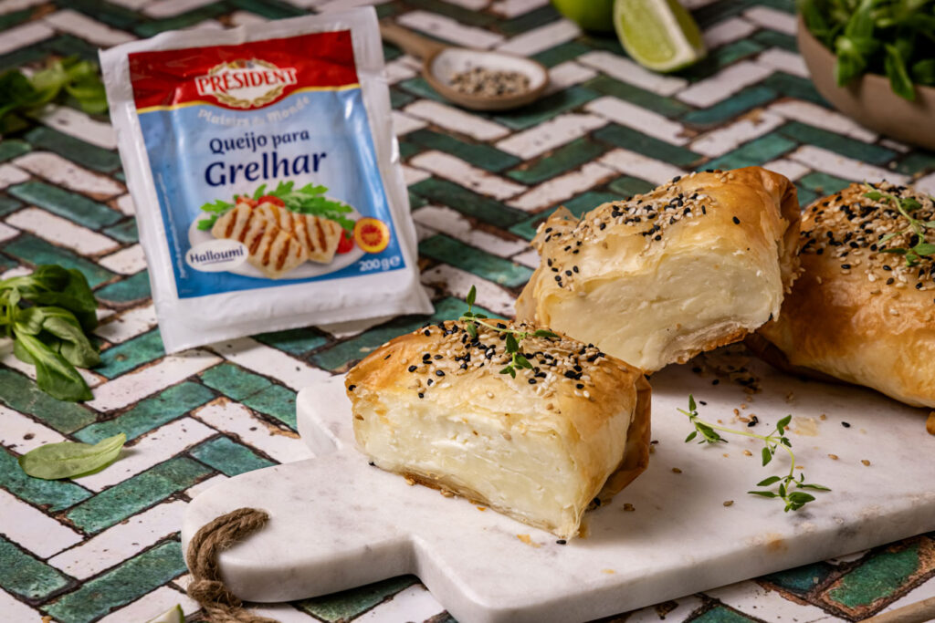 O folhado de queijo halloumi é aquele tipo de receita que conquista logo no primeiro olhar. Simples, rápido e incrivelmente crocante, é perfeito para quando queremos impressionar sem complicar.
